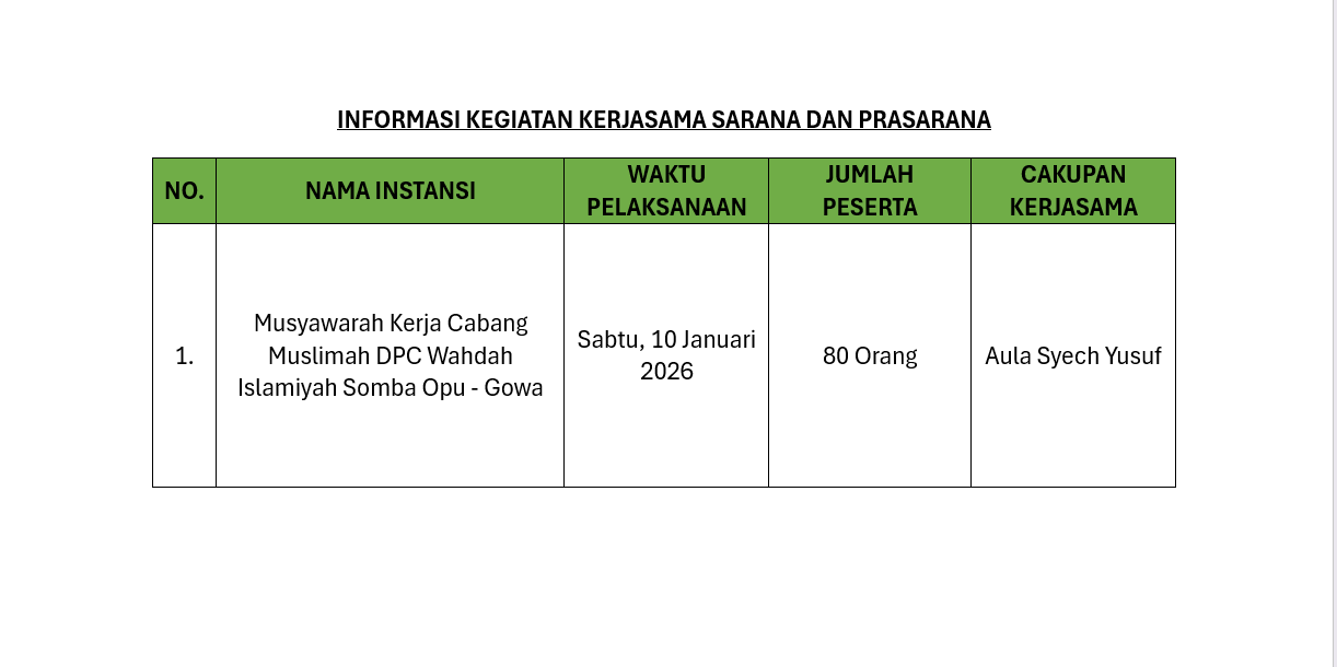 Informasi Kegiatan Kerjasama Tanggal 10 Januari 2026 posted by Haryuti Abdi 5 10/01/2026 08:00:00 Informasi Kegiatan Kerjasama Sarana dan Prasarana di BBPP Batangkaluku