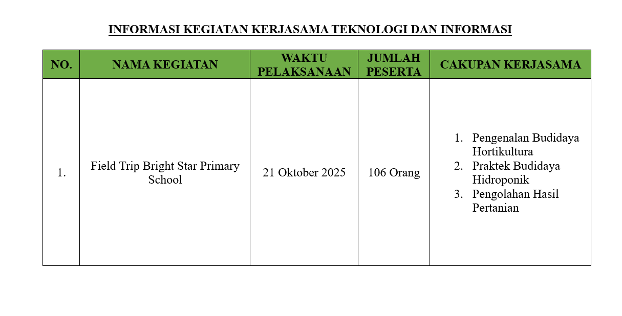 Informasi kegiatan kerjasama Tanggal 21 Oktober 2025 posted by Haryuti Abdi 168 21/10/2025 08:00:00 Informasi Kegiatan Kerjasama Teknologi dan Informasi di BBPP Batangkaluku